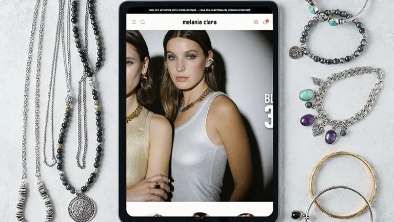 Melania Clara is a contemporary jewelry brand offering elegant, everyday-wear pieces known for effortless luxury, intuitive magnetic closures, fast shipping, and a 2-year product warranty. Their existing Shopify store operates on the Broadcast Theme version 6.1.0, which lacks modern design elements, performance updates, and key Shopify 2.0 features.